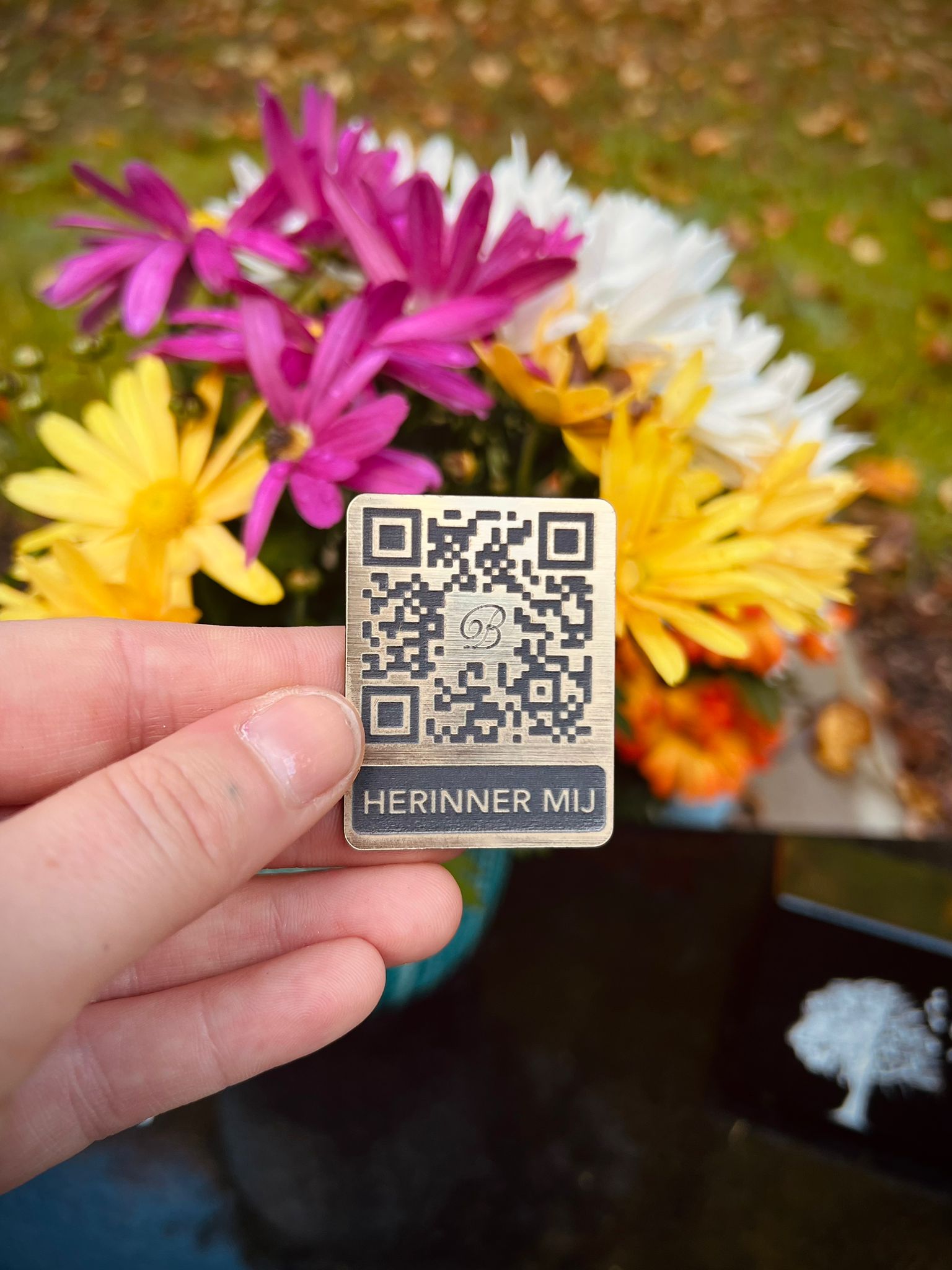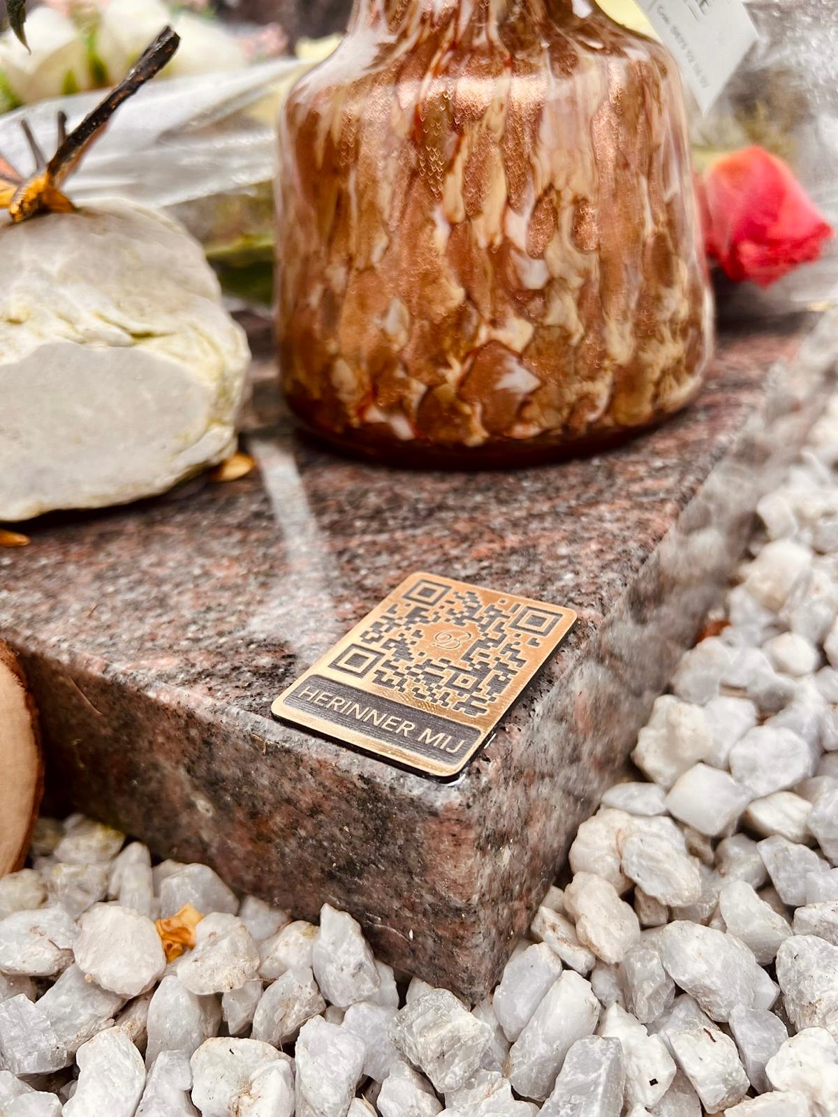 Dit met bijhorende QR-tag die kan worden aangebracht op de gedenksteen of een locatie naar keuze.